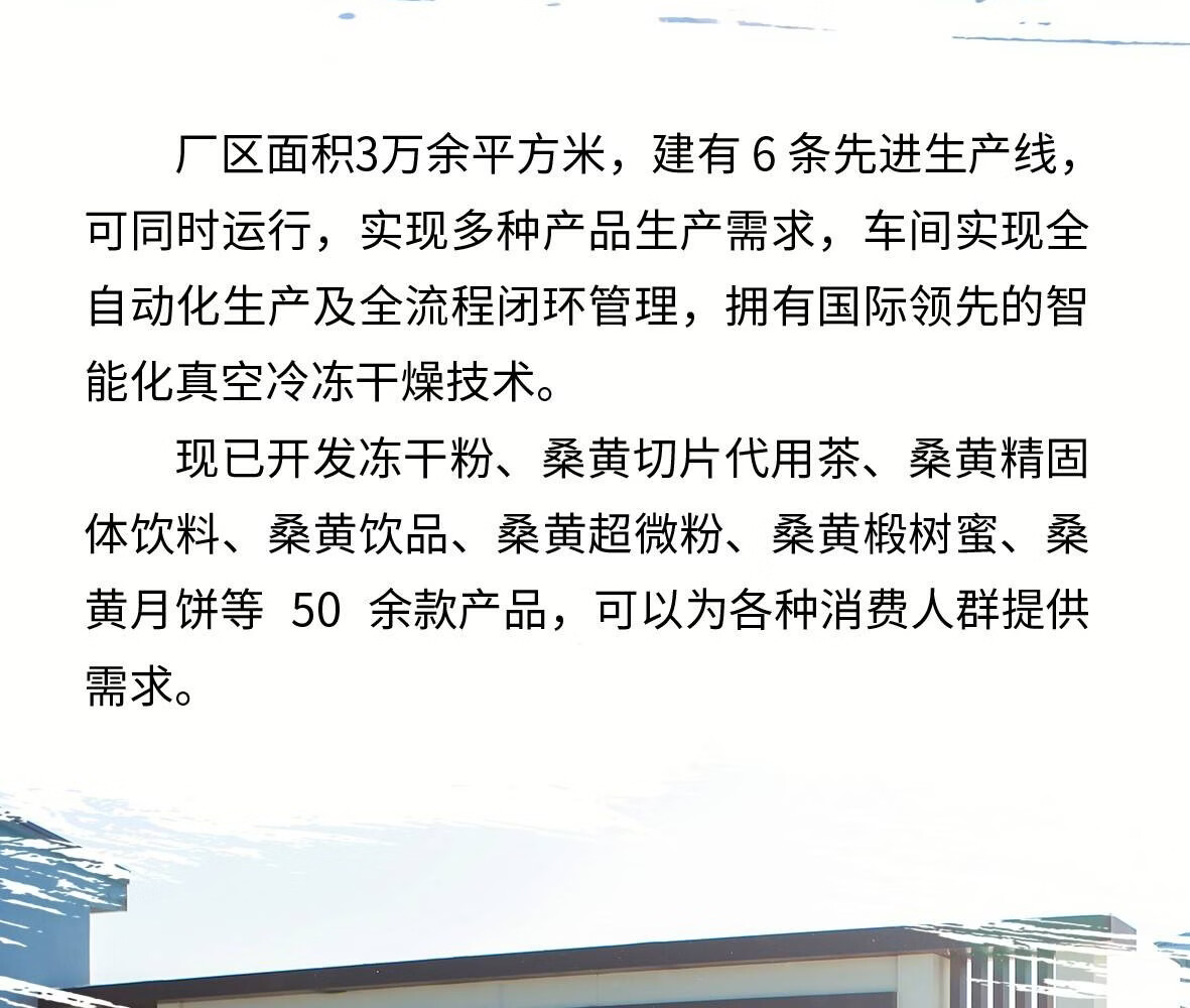 本品选自三年生长白山桑黄 ,确保原料品质。 先进工艺: 采用现代纳米冻干技术 ,最大限度保留桑黄活性成分。